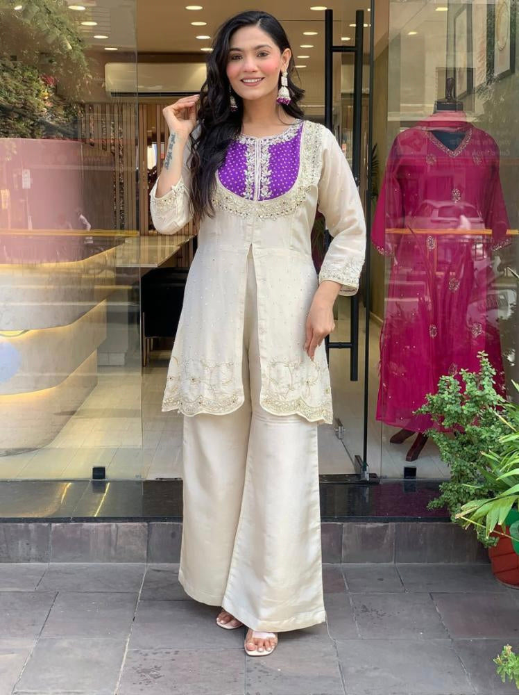 - Roman Shimmer Silk With Embroidery Coding Sequence Work With Beads