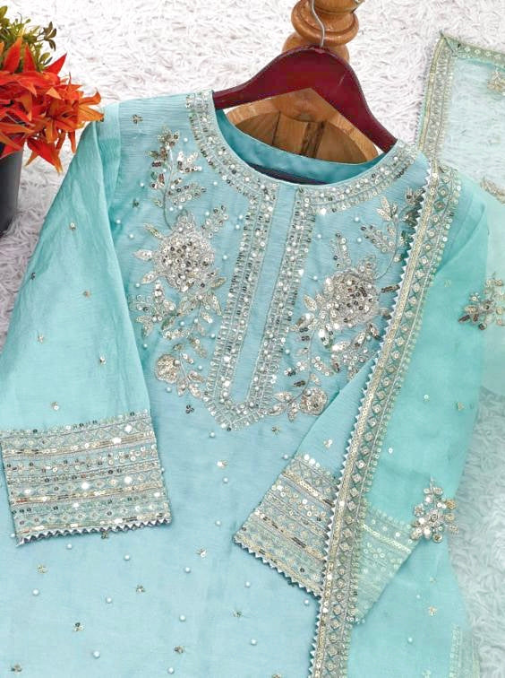 - *Top Fabric* :*Chinnon Silk With Embroidery Sequence Work With Full Sleeve*