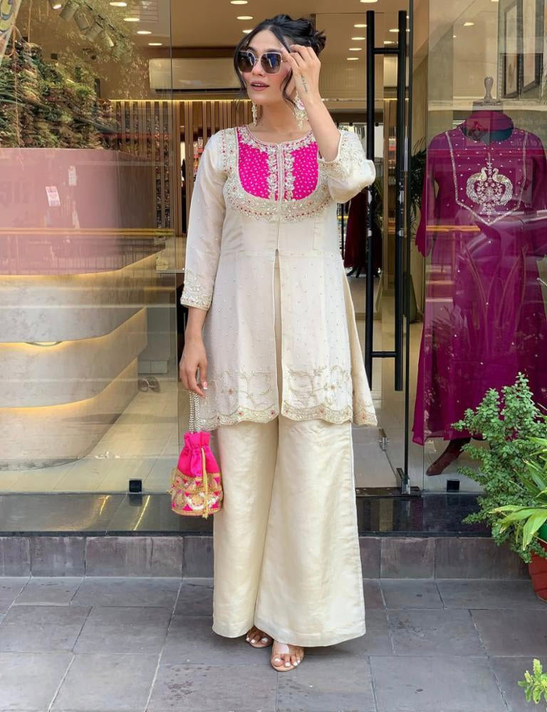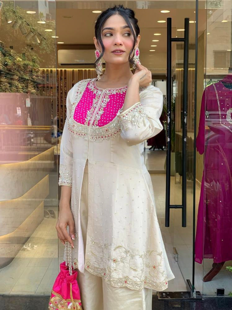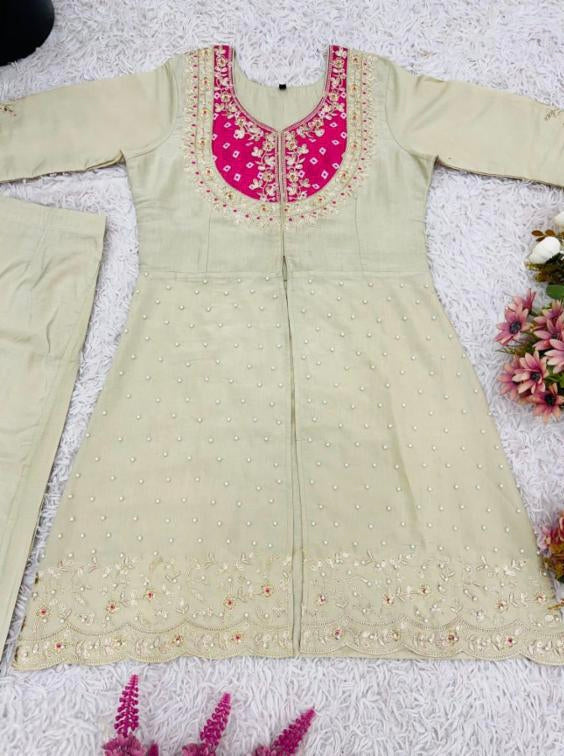 - Roman Shimmer Silk With Embroidery Coding Sequence Work With Beads