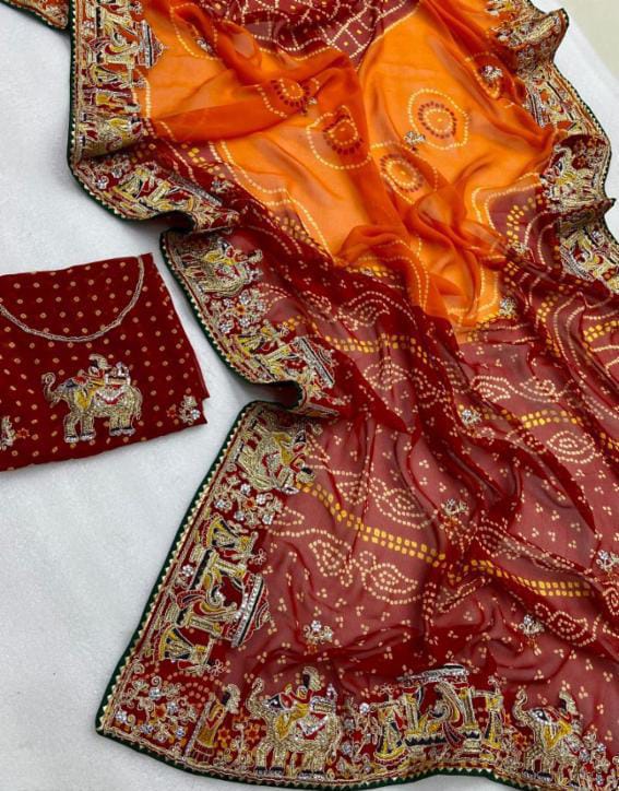 Georgette Pending Bhandhani Embroidery Work