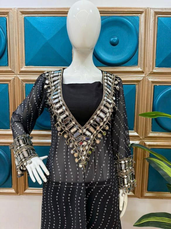 Work:- DIGITAL PRINT, EMBROIDERY AND REAL MIRROR CUT-WORK BORDER*