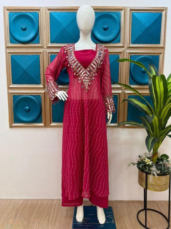 WE ARE LAUNCHING NEW SUPERHIT TRENDING KURTI, PENT & BLOUSE ON CHINON FABRIC WITH DIGITAL PRINT AND REAL MIRROR HAND WORK.