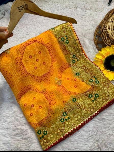 Today Special Luxury Pure Georgette Bandhani Print Designer Look Saree Launching
