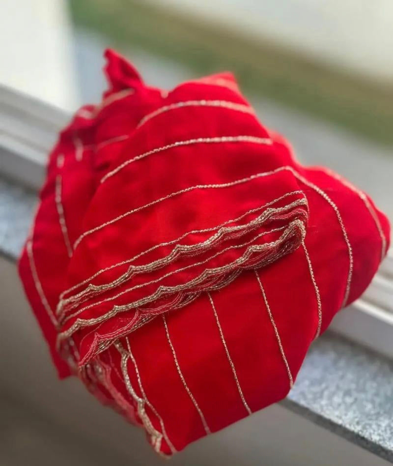 The most favourite pure red georgette saree Three Layer Cutdana* Border And *Double Layer Arco* hand work Border Having All Over Saree hand work blouse