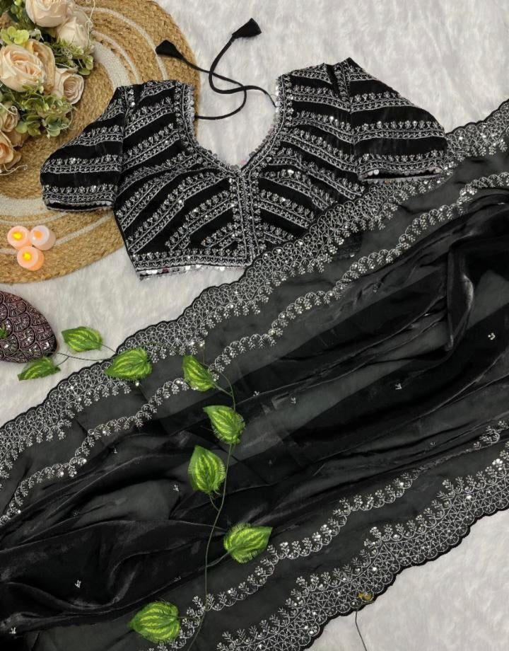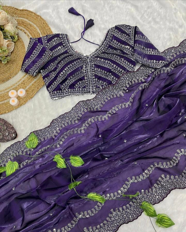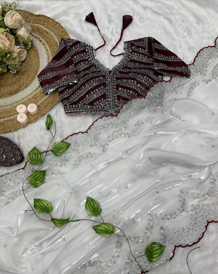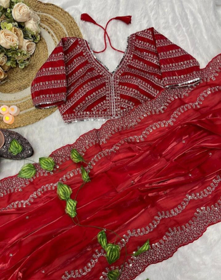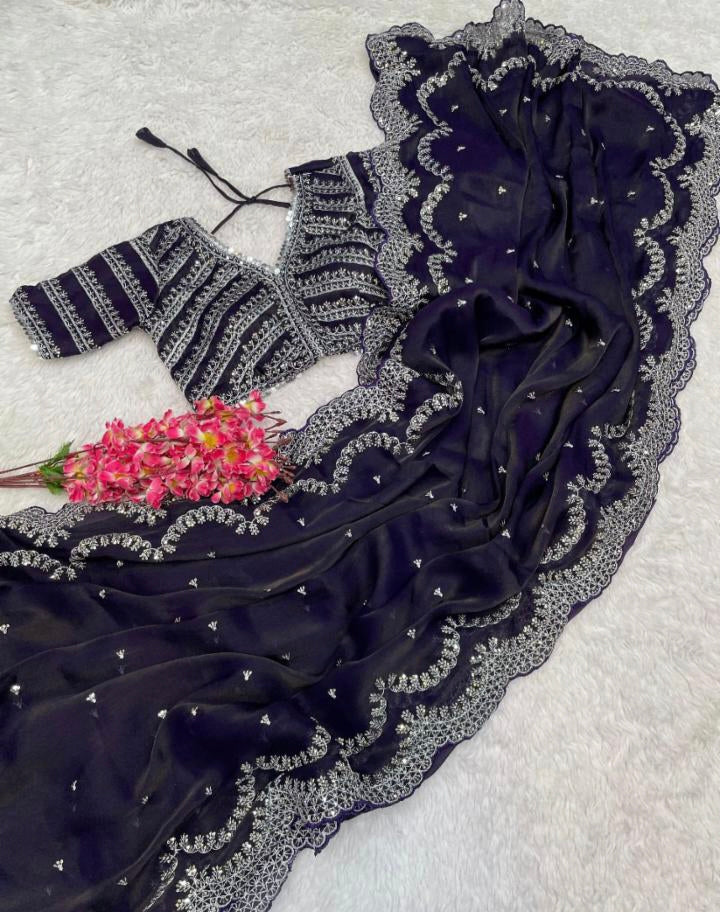 Party Wear Jimmy Choo Satin Sequence Zari Saree
