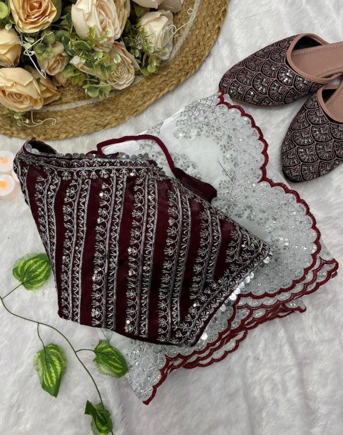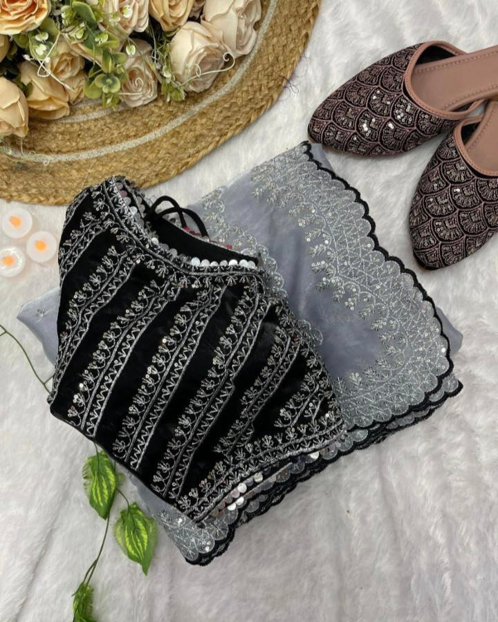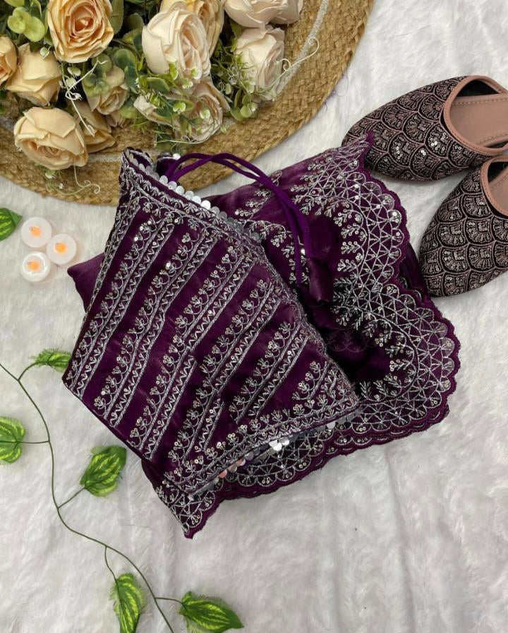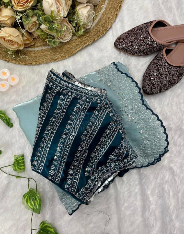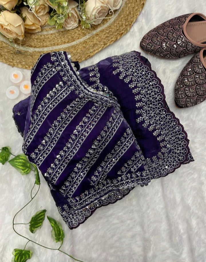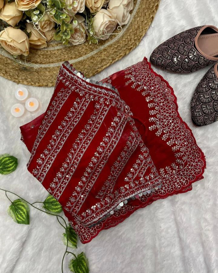 Party Wear Jimmy Choo Satin Sequence Zari Saree