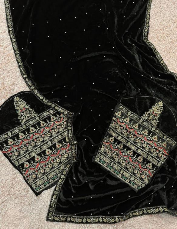 Party Wear Pure 9000 Velvet Embroidery Saree